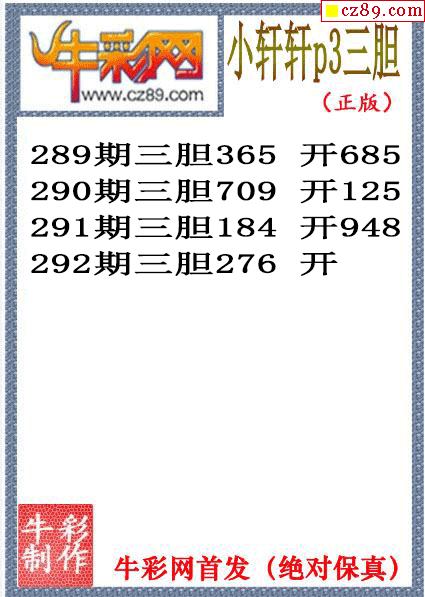 > 小轩轩三胆292期体彩P3图谜(原创)