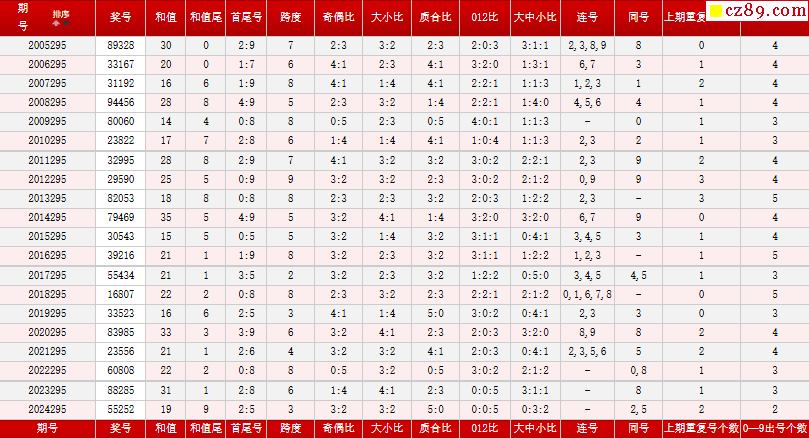 > 第295期体彩P5历史同期对比